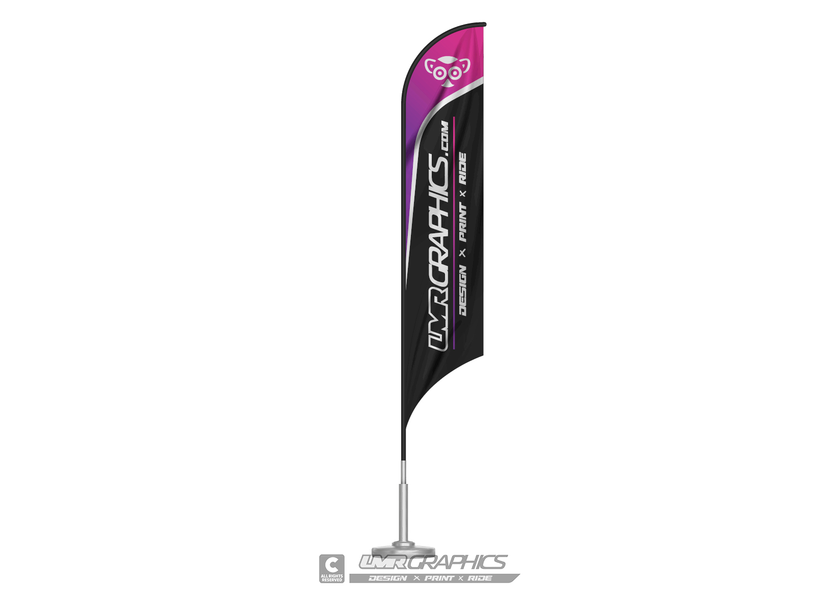 La Bandera MX, es un Fly Banner en forma de tabla de surf. Dispone del espacio en la bandera para el diseño que queremos mostrar.