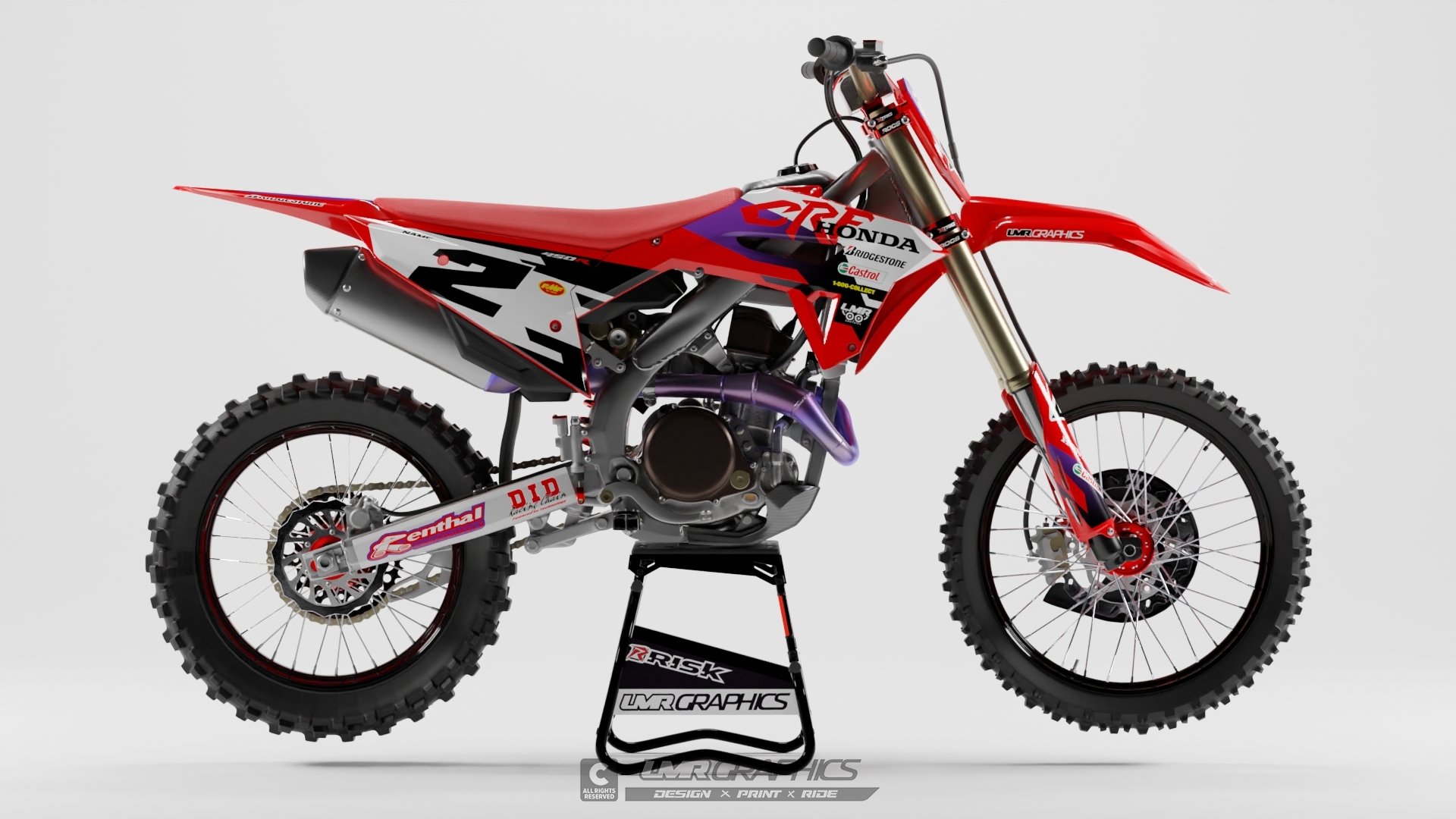 Este kit incluye los adhesivos de: Guardabarros delantero, guardabarros trasero, placas de radiador-depósito, dorsal delantero, dorsales laterales, protectores de horquilla y basculante.
